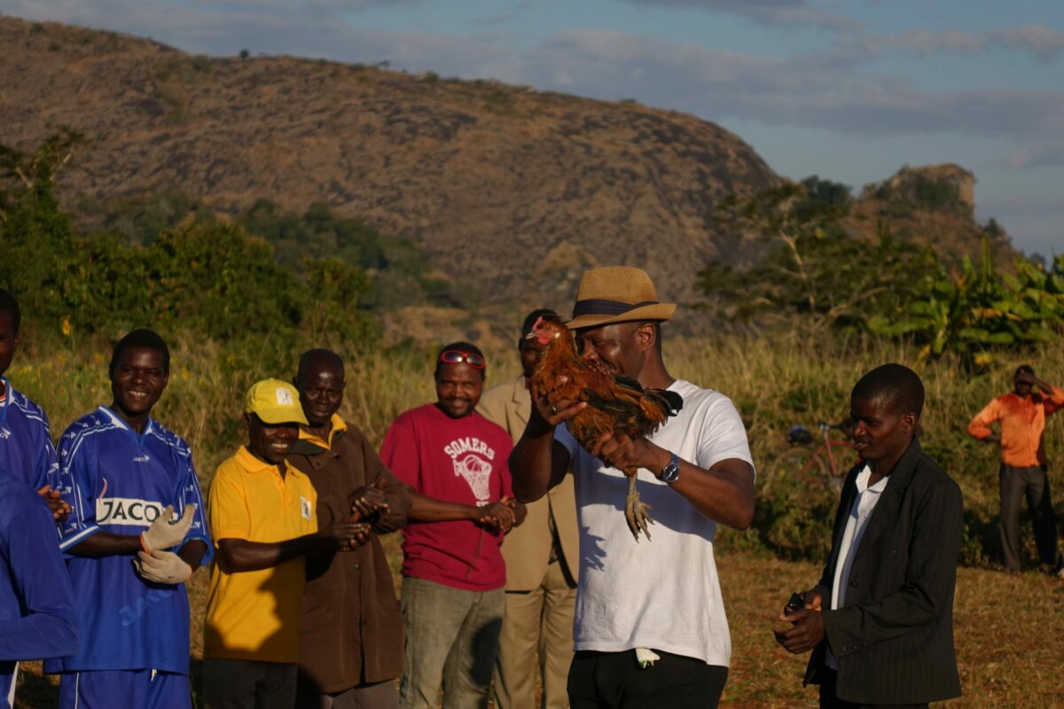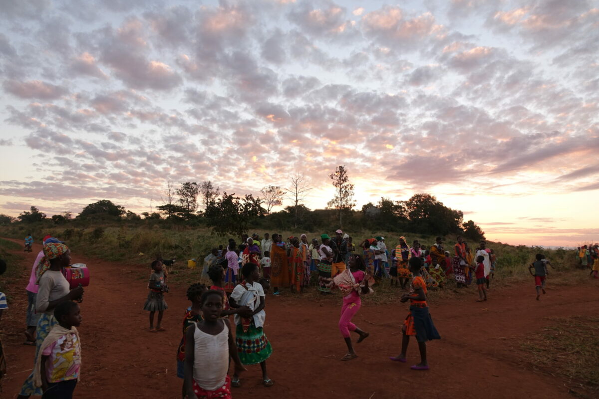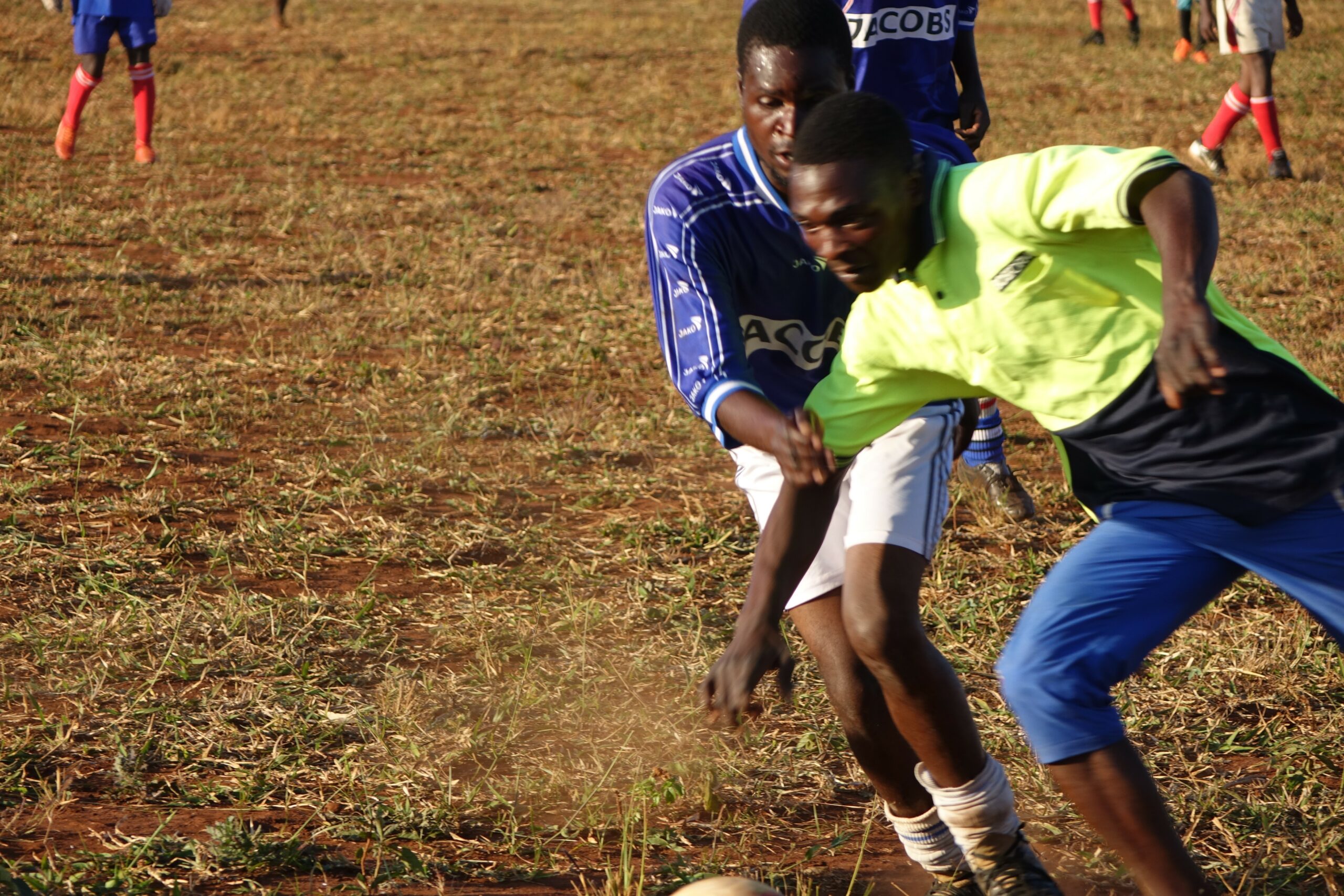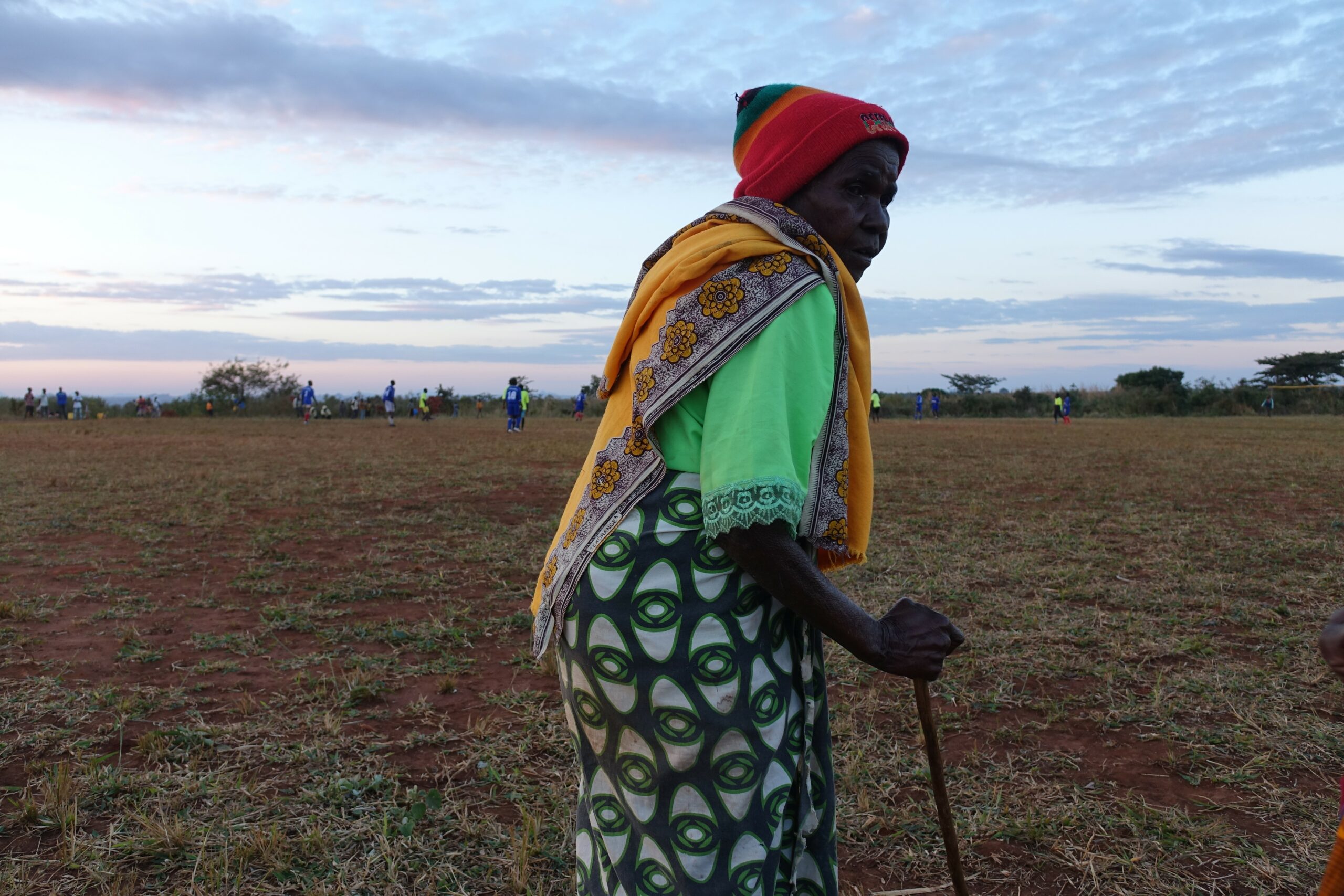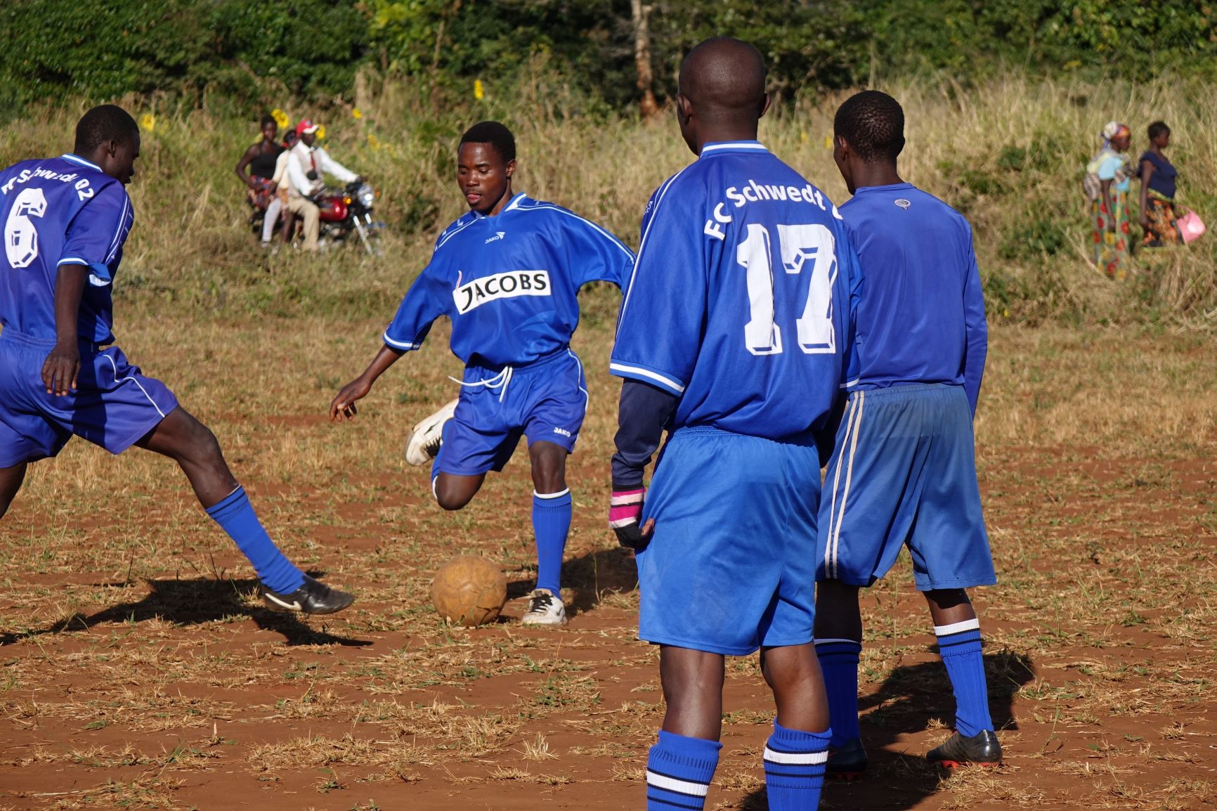 An einem Sonntagnachmittag im September 2018 versammelt sich die ganze Gemeinde rund um den Fußballplatz in Charonga. Das Team „Charonga“ erwartet die Mannschaft aus der Nachbargemeinde Nhamassacara zum Freundschaftsspiel. Wir sind aus Deutschland zu Besuch, Ibraimo hat Trikots und einen neuen Ball mitgebracht. Vor dem Spiel erfolgt die feierliche Übergabe des Balls und auch des Dankeschöngeschenks in der Tradition der Gastgeber. Obwohl einige Spieler der Gegner schlechter ausgestattet sind und barfuß spielen, gewinnen sie am Ende 1:0.