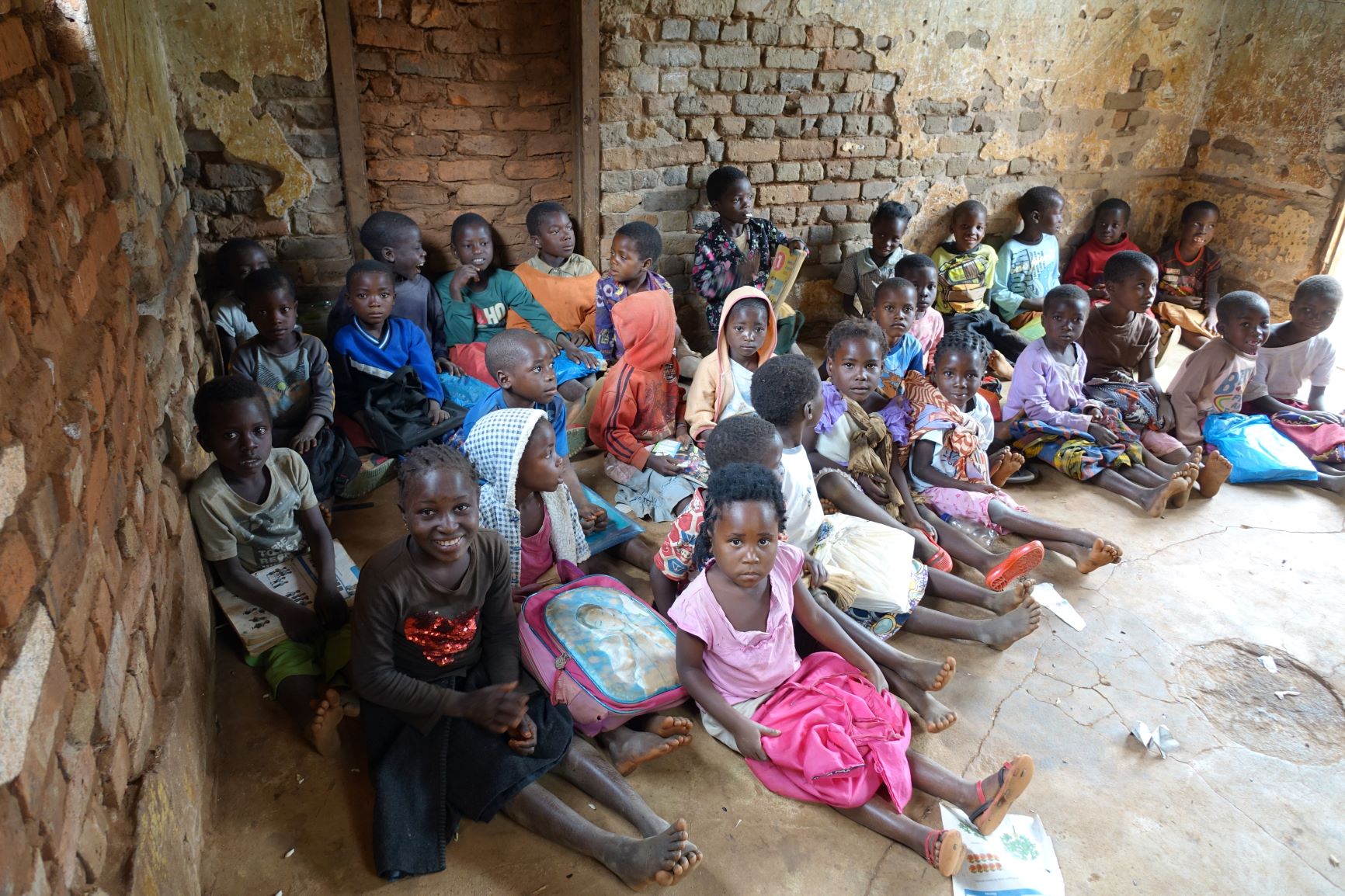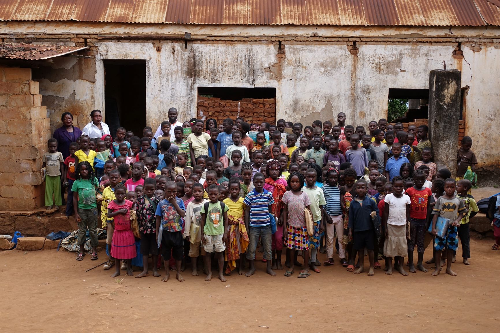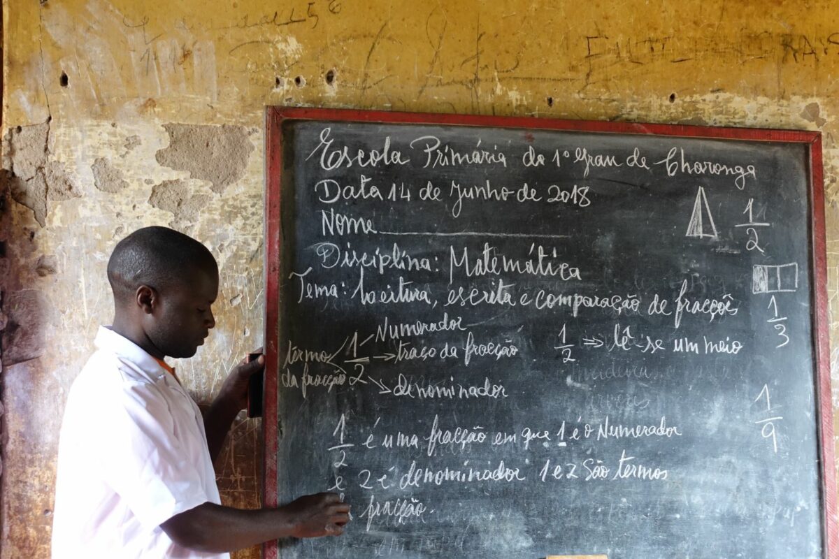 Als wir die Primarschule (Klassen 1-5) in Charonga im Jahr 2018 kennenlernten, fand der Unterricht für 230 Schüler*innen in einer viel zu kleinen Ruine eines ehemaligen Kolonialbaus mit zwei Räumen statt. Der Unterricht musste oft draußen durchgeführt werden. Auch drinnen gab es keine Schulbänke. Während der Regenzeit von ungefähr November bis März fiel die Schule wegen der Nässe fast komplett aus. Somit war hier eine kontinuierliche Schulbildung kaum umsetzbar. Da der Unterricht zumeist in ihrer Zweitsprache Portugiesisch durchgeführt wird, bleibt der Analphabetismus auf hohem Niveau für die Kinder. Auch Erwachsene haben keine Möglichkeit, an abendlichen Alphabetisierungskursen teilzunehmen, da es keinen geeigneten Raum mit Elektrizität dafür gibt, obwohl dieser Unterricht staatlicherseits angeboten wird.